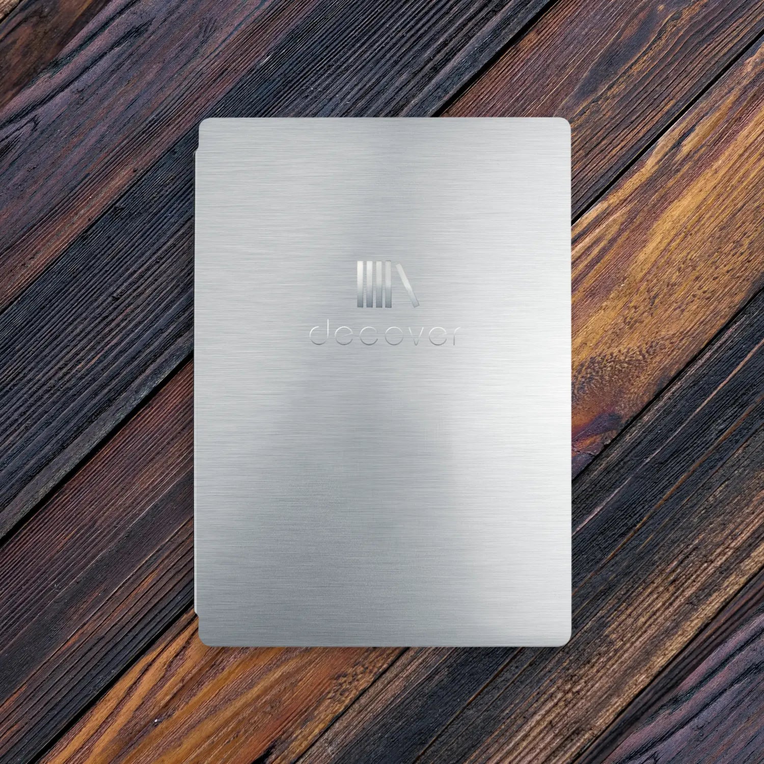 We were asked to create a sturdy menu-cover for Kaap Noord. This smooth metal A4 version is equipped with binding screws.